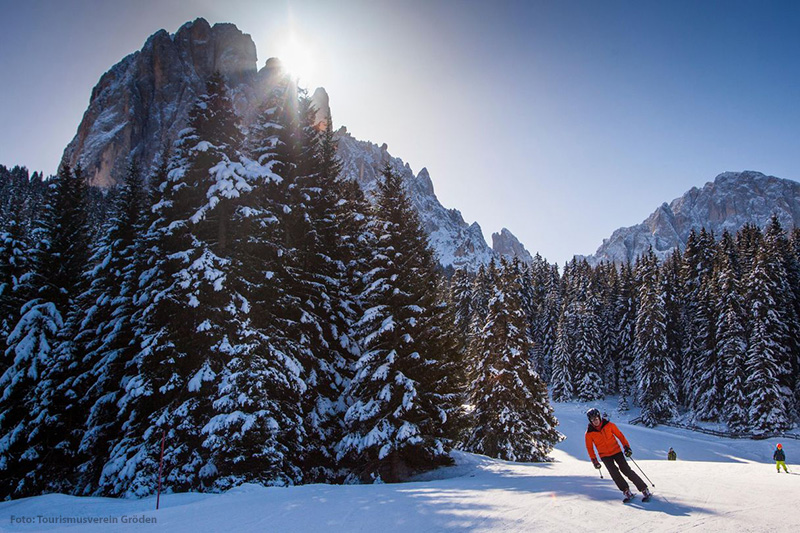 Übrigens liegt die Skiregion Gröden – Seiser Alm mittem im Ski-Karussell Dolomiti Superski. Mit dem Dolomiti Superski Skipass kannst Du sogar alle 12 Skiregionen, 450 Liftanlagen und 1.220 Pisten-km erkunden.